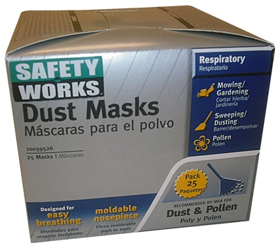 25 Pack, Non-Toxic Dust Masks, Moldable Metal Noseband Reduces Fogging in Glasses, Latex Free & Hypoallergenic For Users With Sensitive Skin, Heavy Duty Elastic Strap Keeps Mask Secure.