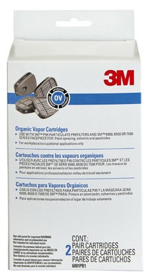 3M(TM) Organic Vapor Replacement Cartridges 6001PB1-1, 1 Pair/Pack, 10 Packs/Case. Contains 1 Pair Of Replacement 6001 Organic Vapor Cartridges For 3M 6000 Series And 7500 Series Respirators.