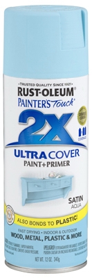 Painters Touch 2X, 12 OZ, Satin Aqua, Spray Paint, Interior/Exterior, Breakthrough Technology That Delivers Twice The Coverage Of Competitive Brands, Comfort Tip With Any Angle Spray Technology Which Allows The Can To Be Sprayed Upside Down, Fast Dry.