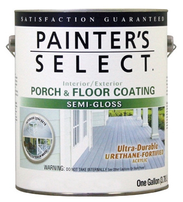 USGF1, Painter's Select, Gallon, White (Pastel Base), Exterior Urethane Fortified Semi-Gloss Porch & Floor Coating, Ideal For Use On Floors, Concrete, Porches & Stairs, Quick Dry, Low Odor Formula, Ideal For Use In Areas Where Ventilation Is Minimal, Touch Wear Resistant Coating, Easy Soap & Water Clean-Up, VOC Less Than 100 Grams Per Litre.