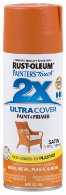 Painters Touch 2X, 12 OZ, Rustic Orange, Satin Spray Paint, Interior/Exterior, Breakthrough Technology That Delivers Twice The Coverage Of Competitive Brands, Comfort Tip With Any Angle Spray Technology Which Allows The Can To Be Sprayed Upside Down, Fast Dry.